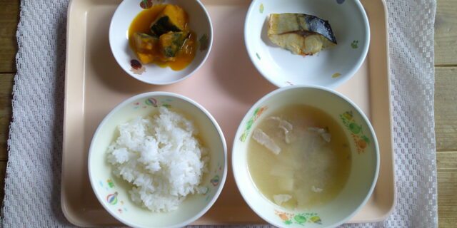 1月21日のメニュー ・ごはん ・さばの塩焼き ・南瓜の甘煮 ・豚汁