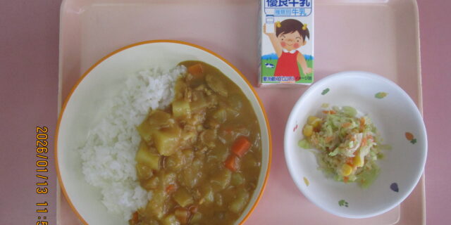 1月13日のメニュー ・ポークカレーライス ・ツナサラダ ・牛乳