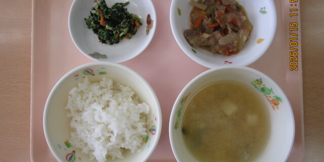 1月15日のメニュー ・ごはん ・焼き肉風 ・ほうれん草のごま和え ・みそ汁