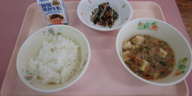 1月20日のメニュー ・ごはん ・麻婆厚揚げ ・ひじきとツナのナムル ・牛乳