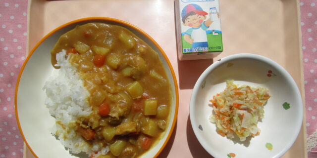 3月4日のメニュー ・チキンカレーライス ・ツナサラダ ・牛乳