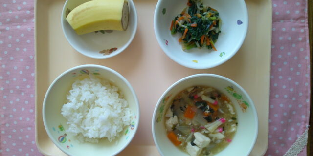 2月4日のメニュー ・ごはん ・豆腐の中華煮 ・小松菜の中華和え ・バナナ