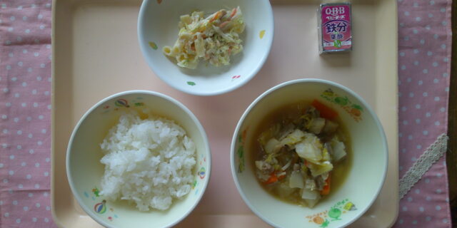 2月17日のメニュー ・ごはん ・すき焼き風煮 ・和風マカロニサラダ ・チーズ