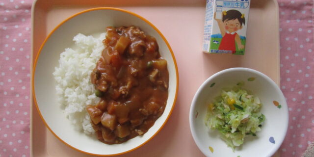 2月3日のメニュー ・節分カレーライス ・コールスローサラダ ・のむヨーグルト
