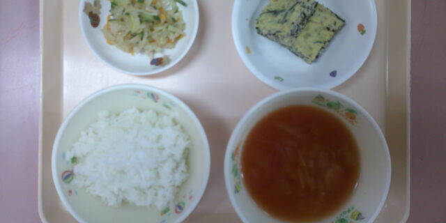9月10日のメニュー ・ごはん ・ひじき入り卵焼き ・切干大根のサラダ ・じゃが芋のトマトスープ