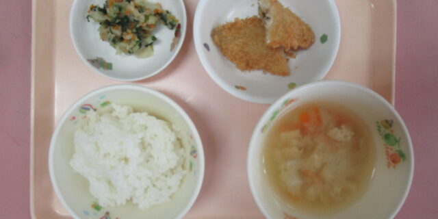 9月25日のメニュー ・ごはん ・アジフライ ・おかか和え ・みそ汁
