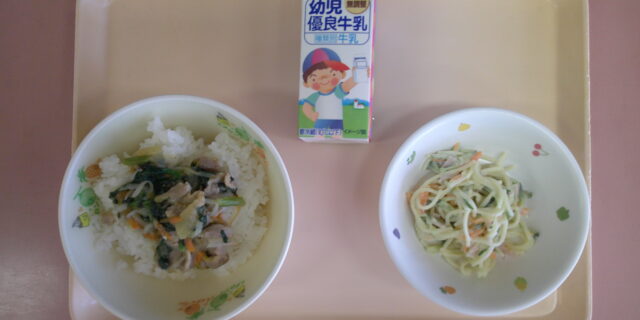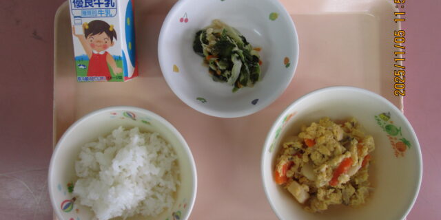 11月5日のメニュー ・ごはん ・親子煮 ・わかめサラダ ・牛乳