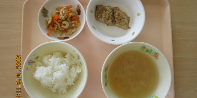 10月29日のメニュー ・ごはん ・さわらのごま焼き ・切り干し大根の煮物 ・みそ汁