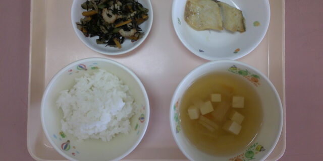 9月4日のメニュー ・ごはん ・鯖のみそ焼き ・ひじきの炒め煮 ・和風スープ