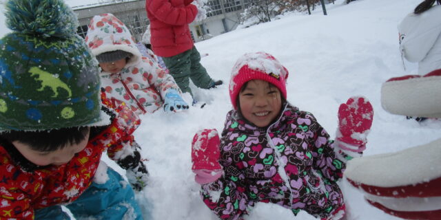 たくさん降った真っ白な雪に大喜び! 雪だるまを作ったり、雪合戦をしたり…寒さなんかに負けないぞ!