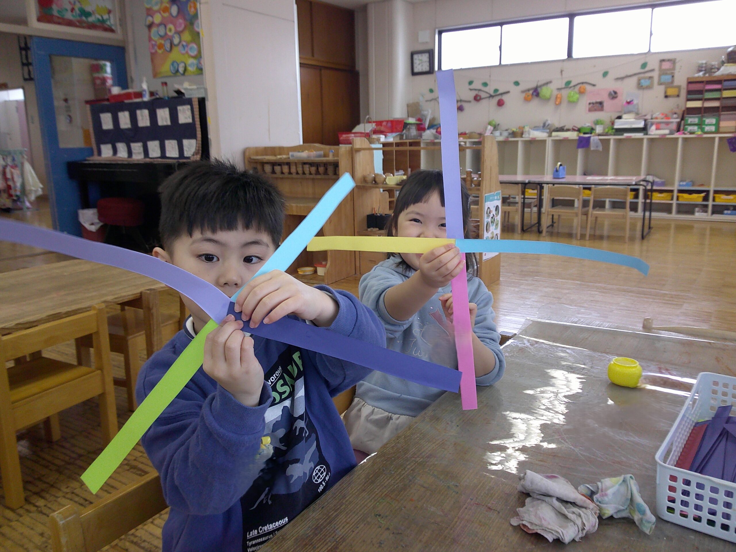「これ、ボクのだよ!」「こうやってつくったんだよ!」と嬉しそうに話す子どもたちの姿も見られました。