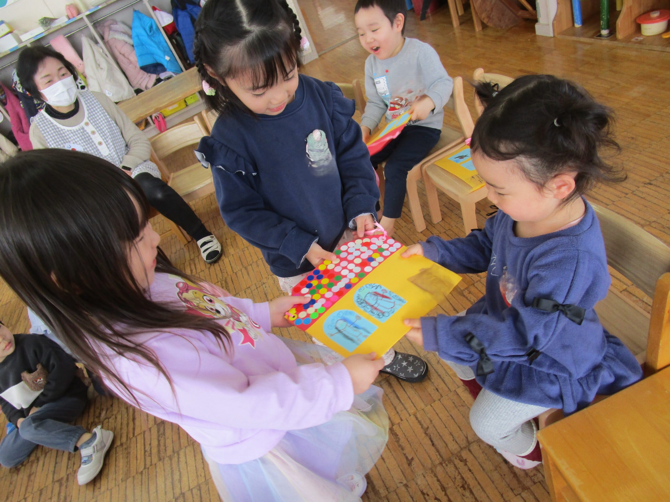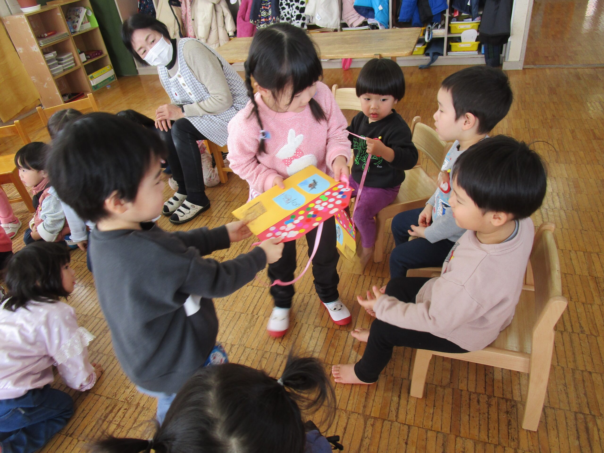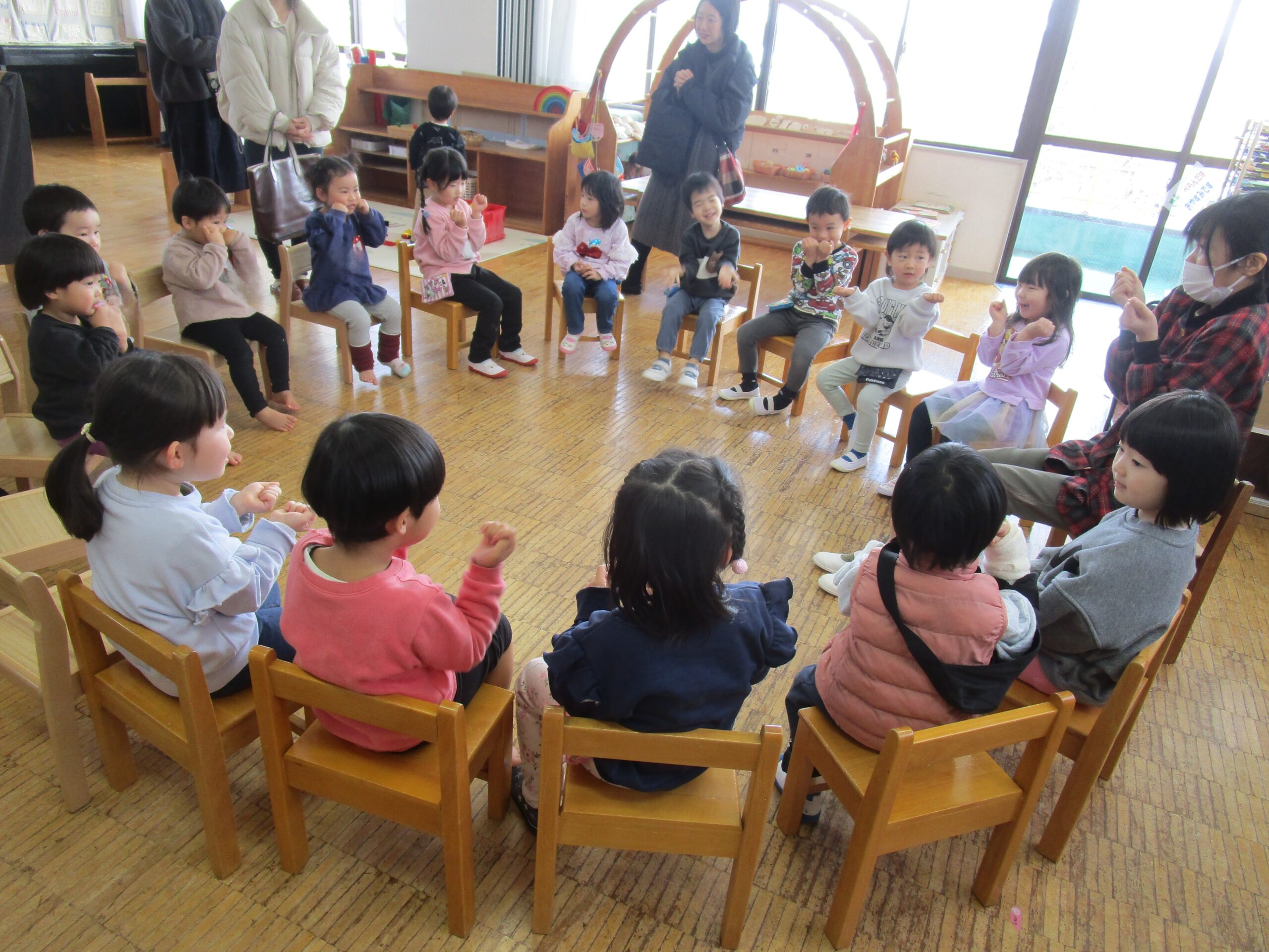 2月21日、来年度すみれぐみ(3歳児クラス)になるお友だちがやってきました。