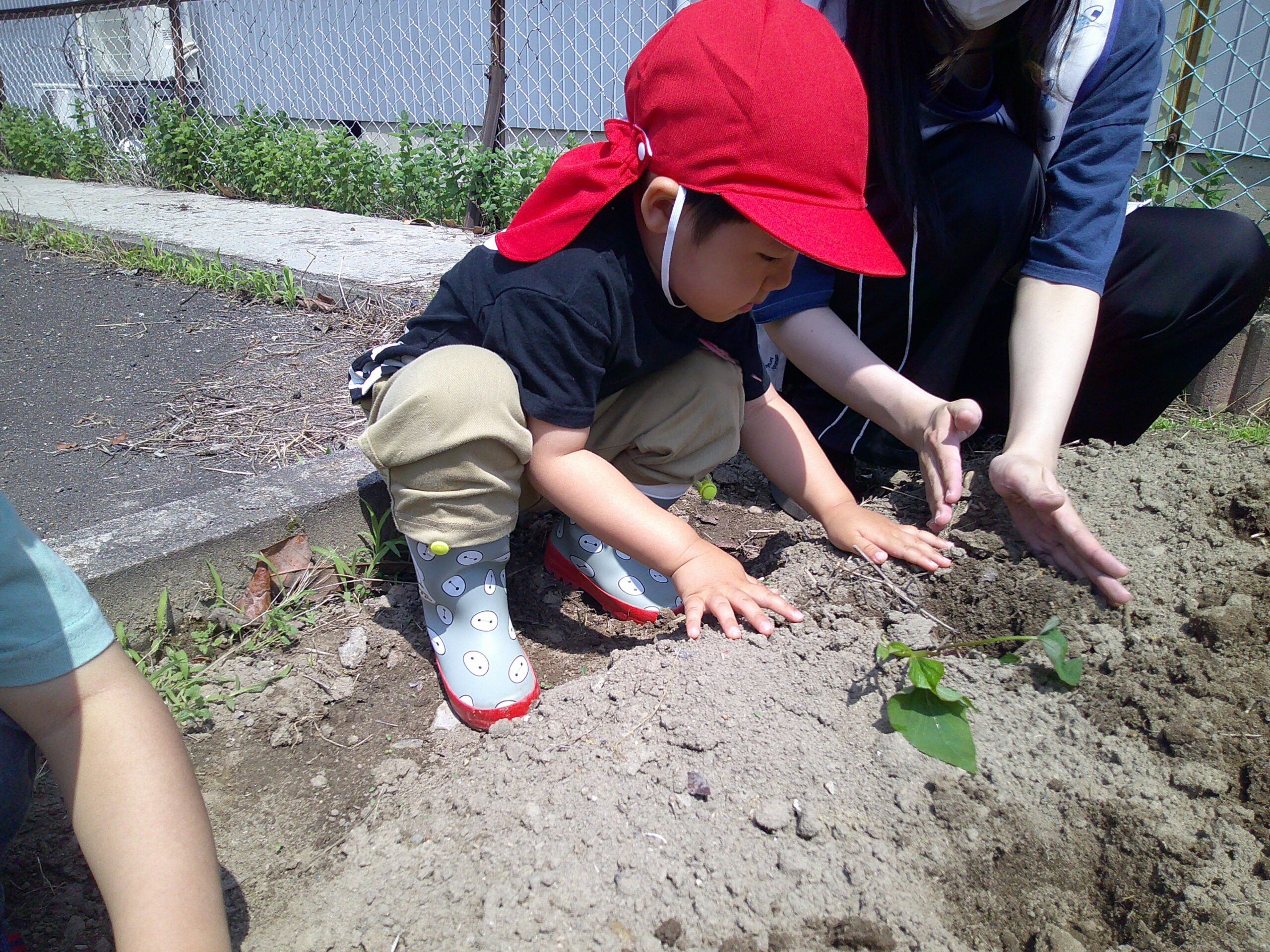 中越ルーテル教会脇にある畑にサツマイモの苗をうえに行きました!