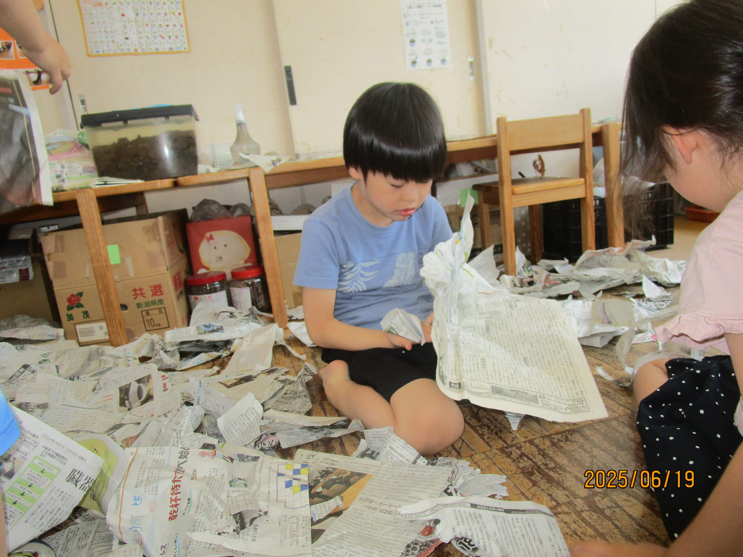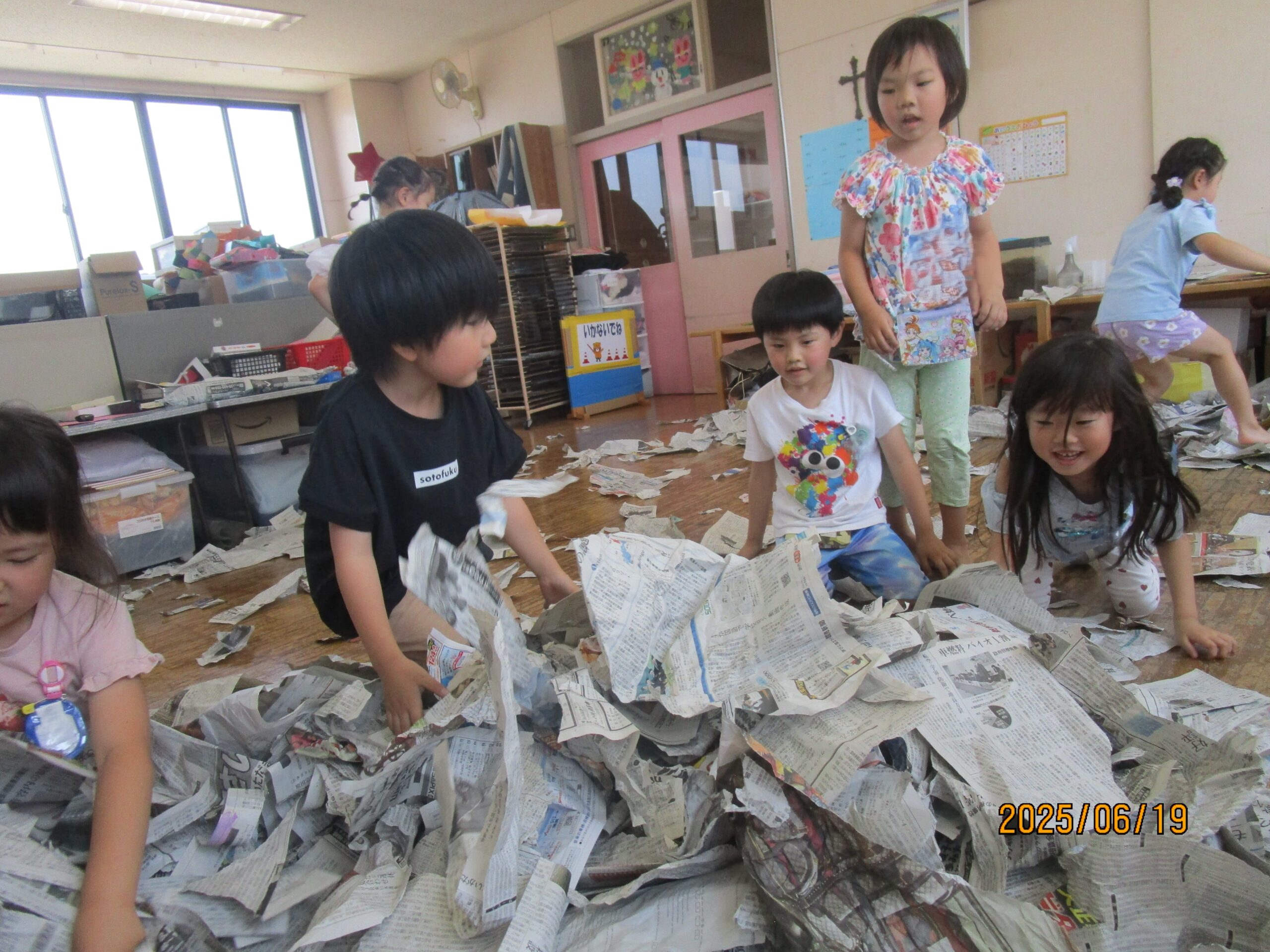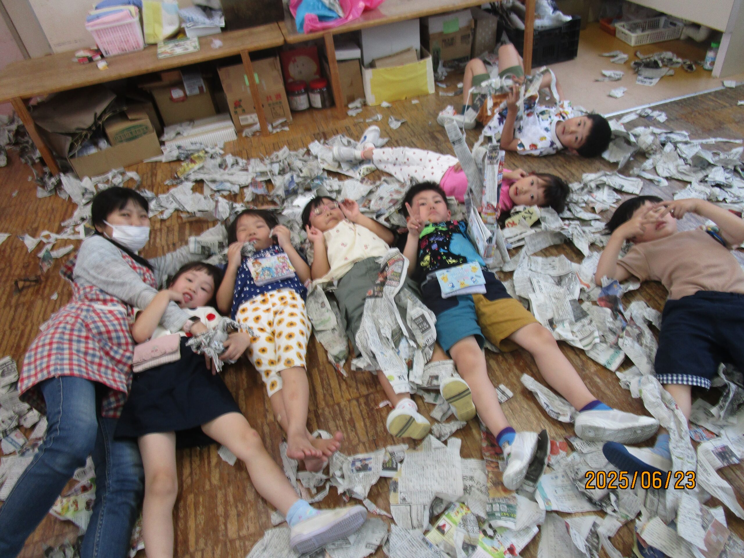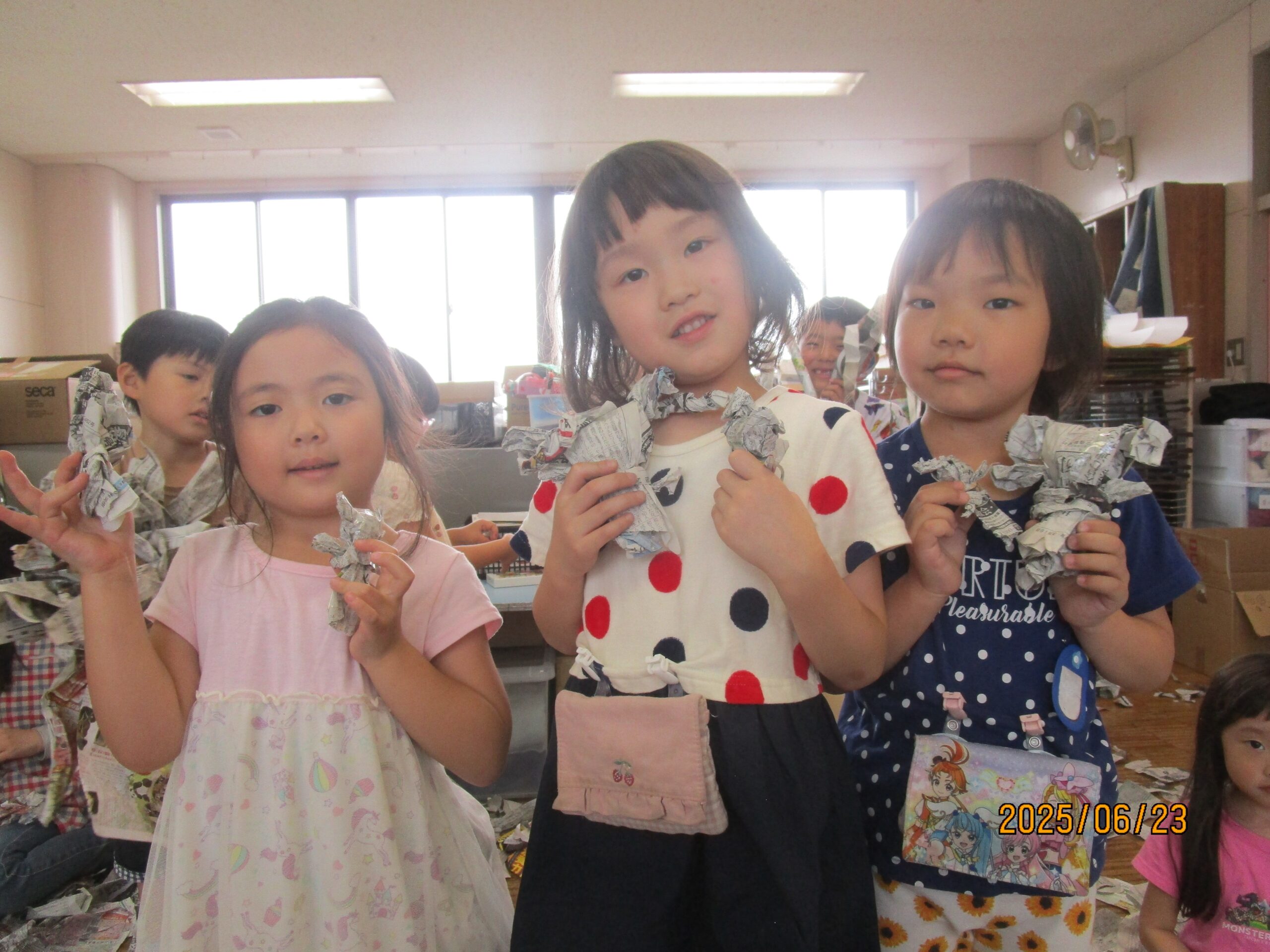 ばらぐみでは今新聞紙遊びが大ブーム!