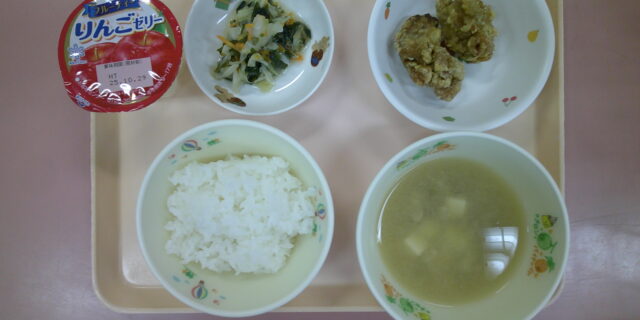 10月16日のメニュー お誕生日会特別メニュー ・ごはん ・鶏肉のから揚げ ・わかめサラダ ・きのこ…