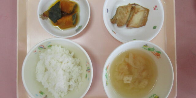 10月2日のメニュー ・ごはん ・さばの照り焼き ・南瓜の甘煮 ・みそ汁