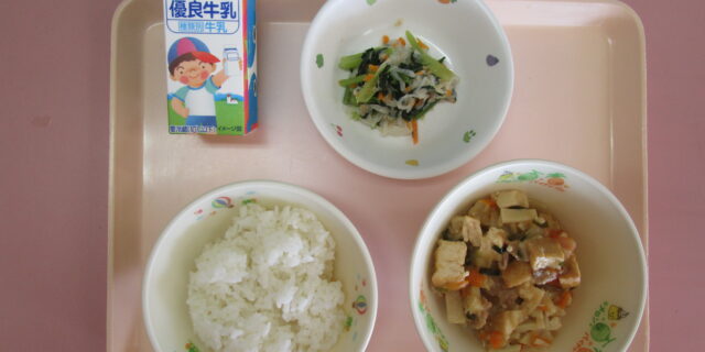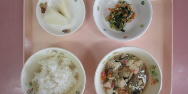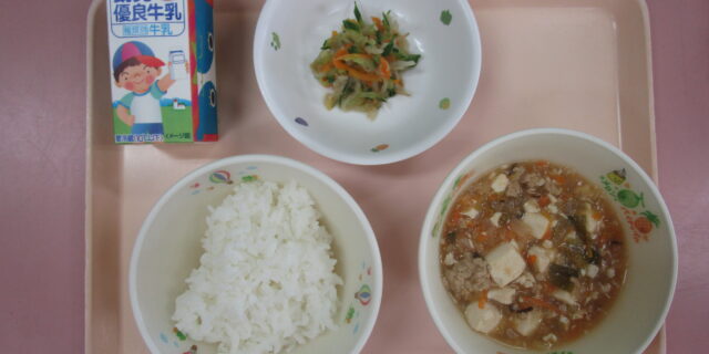 10月15日のメニュー ・ごはん ・麻婆豆腐 ・中華和え ・牛乳