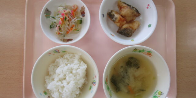 10月8日のメニュー ・ごはん ・白身魚の甘辛煮 ・春雨の甘酢和え ・みそ汁
