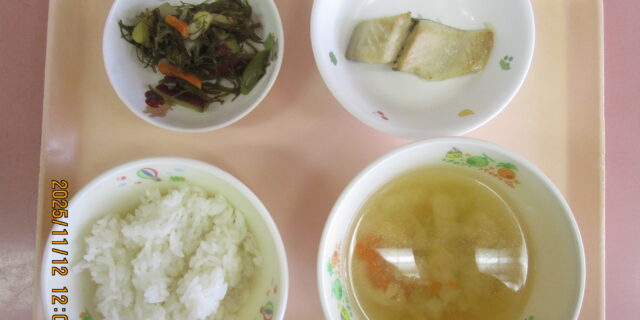 11月12日のメニュー ・ごはん ・さばの塩焼き ・刻み昆布の煮物 ・みそ汁