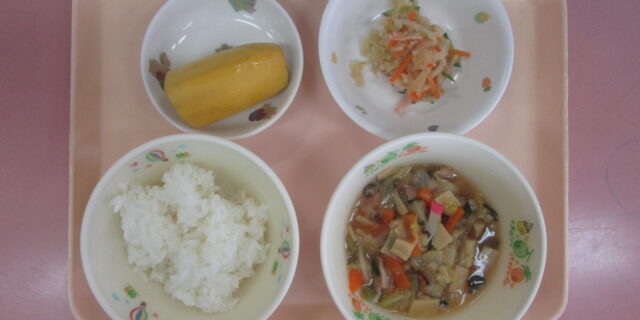 11月18日のメニュー ・ごはん ・八宝菜 ・切り干し大根のサラダ ・バナナ