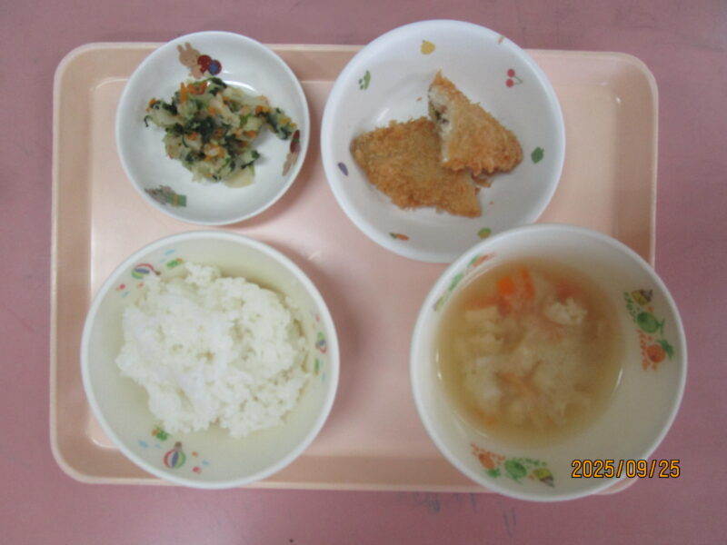 ・ごはん ・アジフライ ・おかか和え ・みそ汁