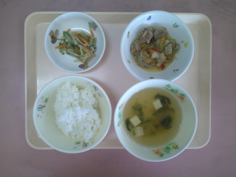 ・ごはん ・焼き肉風 ・中華和え ・豆腐スープ