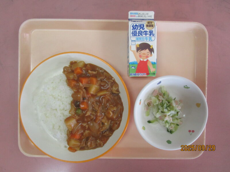 ・森のきのこのハヤシライス ・ハムのマリネ ・牛乳
