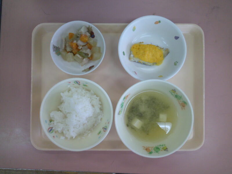 ・ごはん ・魚の紅葉焼き ・秋野菜の煮物 ・みそ汁