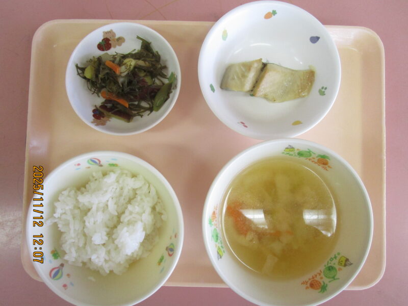 ・ごはん ・さばの塩焼き ・刻み昆布の煮物 ・みそ汁