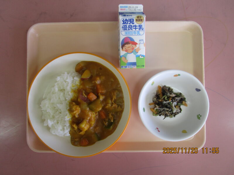 ・かぼちゃの秋色カレーライス ・ひじきとツナのナムル ・牛乳