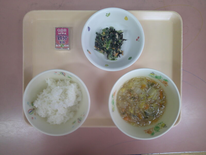 ・ごはん ・マーボー白菜 ・ひじきと青菜のサラダ ・チーズ