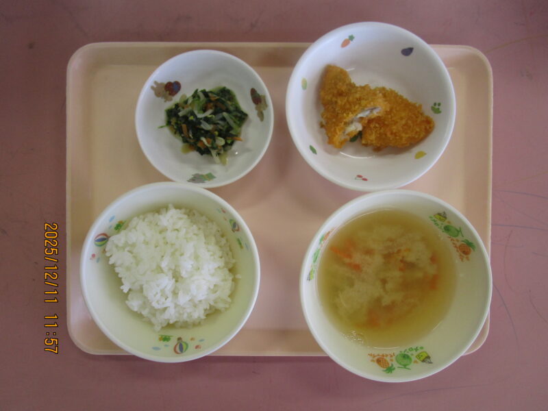 ・ごはん ・白身魚のフライ ・ほうれん草のナムル ・みそ汁