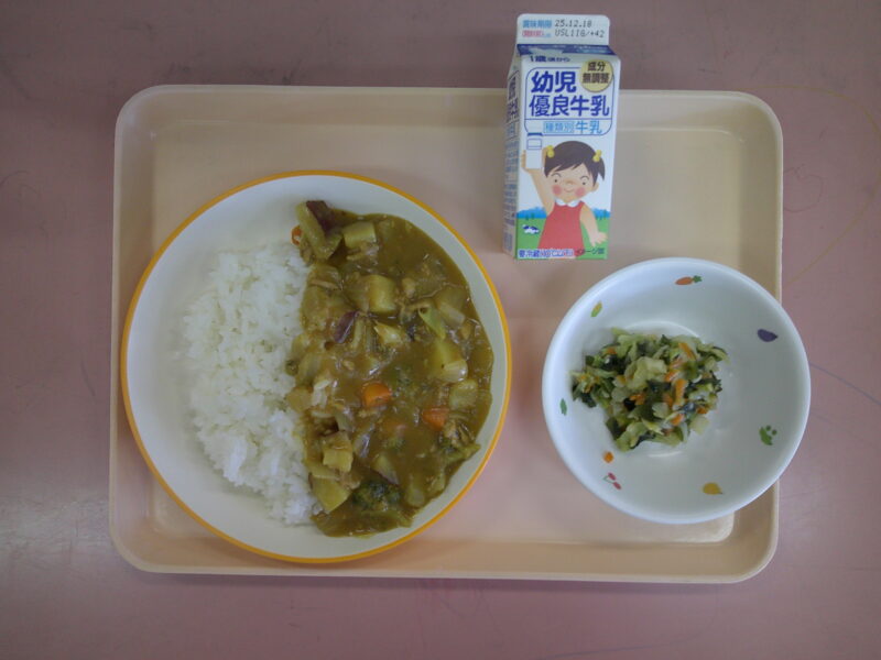 ・冬野菜カレーライス ・わかめサラダ ・牛乳