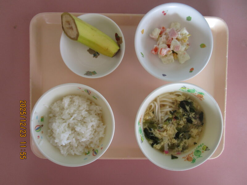 ・ごはん ・かき玉うどん汁 ・コロコロサラダ ・バナナ