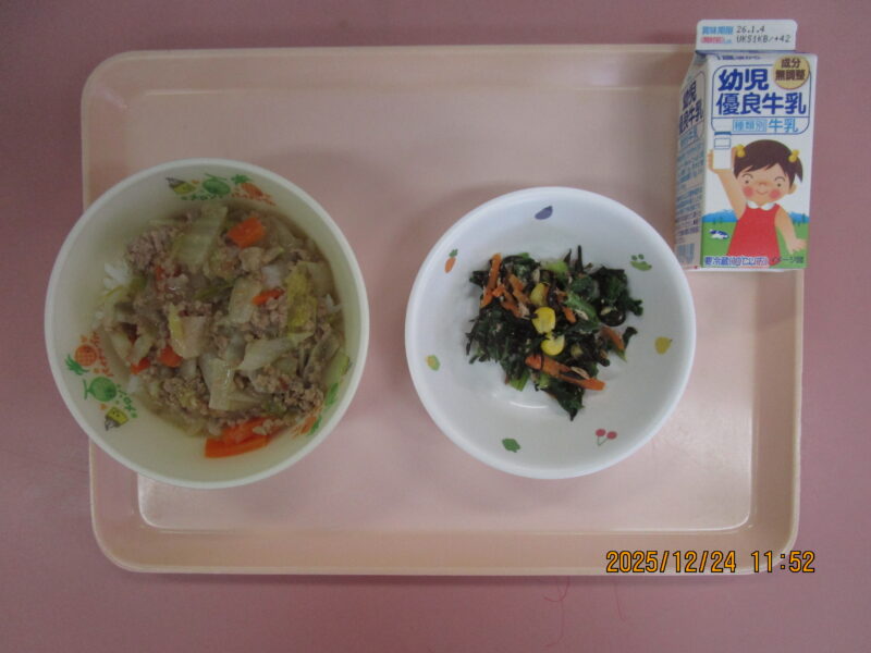 ・冬やさい丼 ・ひじきとツナのサラダ ・牛乳