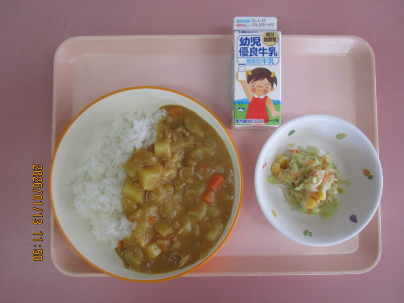 ・ポークカレーライス ・ツナサラダ ・牛乳