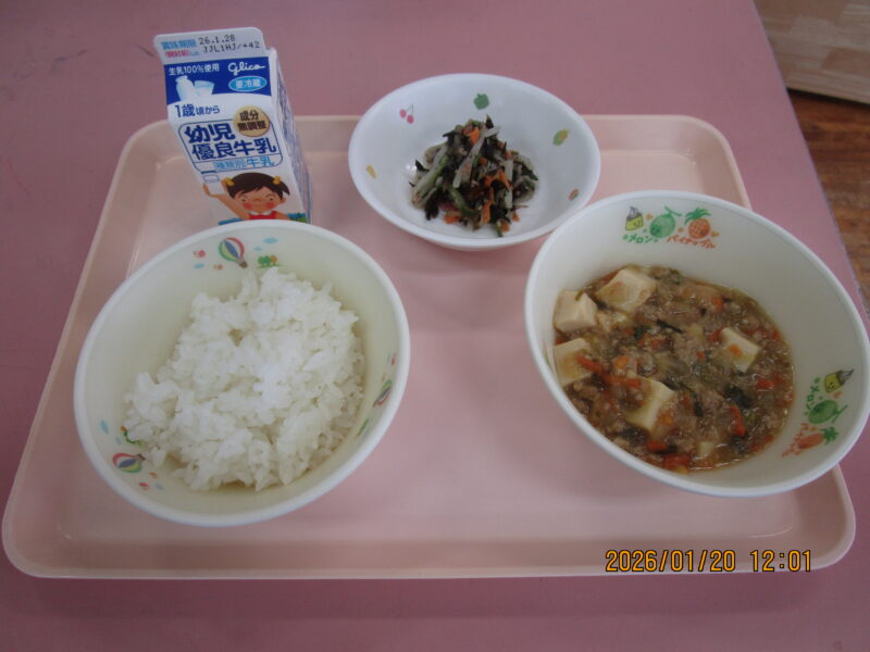 ・ごはん ・麻婆厚揚げ ・ひじきとツナのナムル ・牛乳