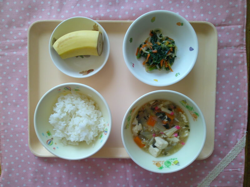 ・ごはん ・豆腐の中華煮 ・小松菜の中華和え ・バナナ