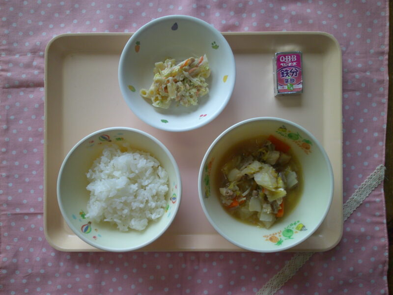 ・ごはん ・すき焼き風煮 ・和風マカロニサラダ ・チーズ