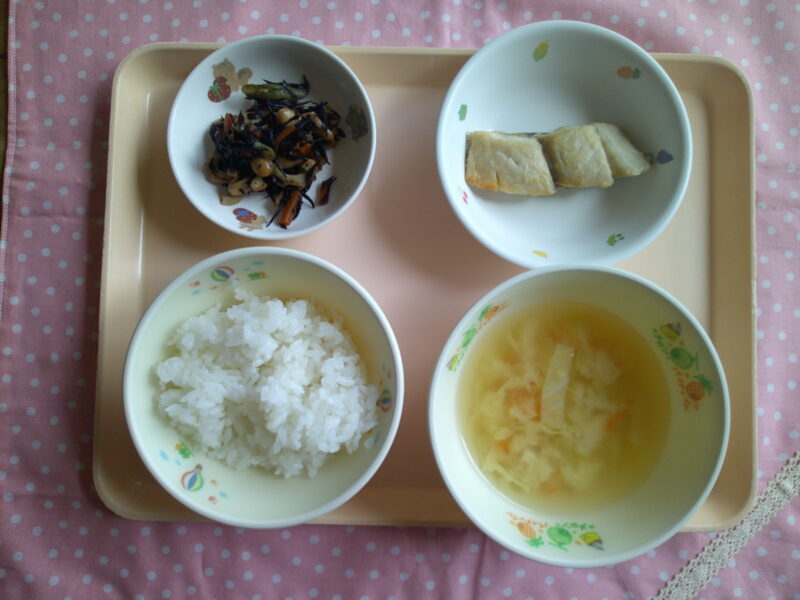 ・ごはん ・さわらのみそ焼き ・大豆とひじきの五目煮 ・みそ汁