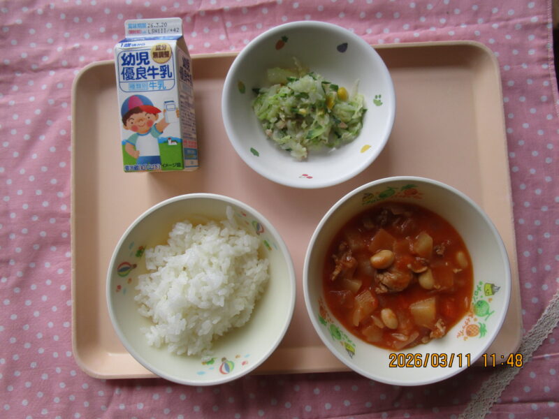 ・ごはん ・ポークビーンズ ・グリーンサラダ ・牛乳