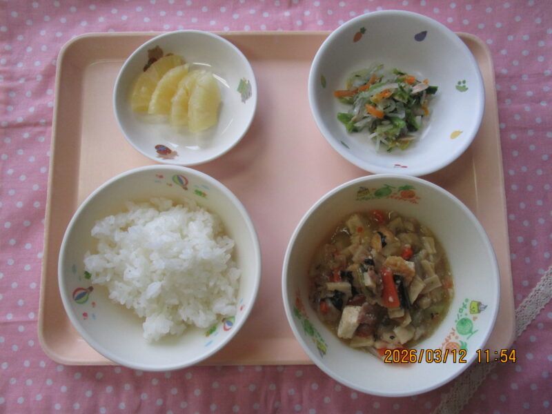 ・ごはん ・厚揚げの中華煮 ・こまツナサラダ ・パイン缶