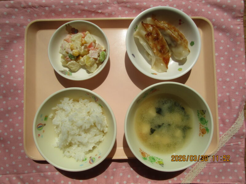 ・ごはん ・焼き餃子 ・コロコロサラダ ・みそ汁