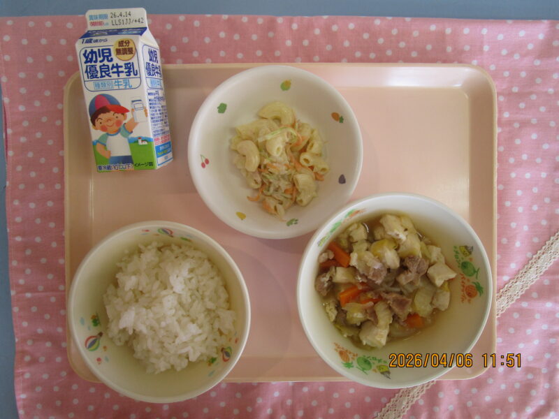 ・ごはん ・肉豆腐 ・マカロニサラダ ・牛乳